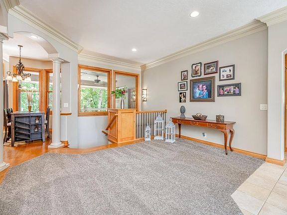 Discover this custom-built home nestled in the highly desirable Andover Central School District. Constructed by Walter Young on a secluded, wooded creek lot, this home offers unique features that are sure to impress. Step through the stunning stained glass front door, to an open seating area. The open kitchen showcases hardwood floors and a spacious walk-in pantry. On the main floor, you'll find a large master suite with an exquisite private living area featuring a custom stone fireplace leading out to a covered deck. The remarkable basement boasts a full kitchen, 3 additional bedrooms (each with walk-in closets), 2 more full baths, washer/dryer hookups, another custom stone fireplace and a concrete storm shelter. A complete home in itself that's perfect for in-laws or grown children. The extensive amenities also include an oversized 3 car garage, built-in alarm system, whole home audio, automatic sprinkler system, new roof in 2020, new paint throughout, fresh exterior paint in 2021, brand new custom master shower, security cameras, new concrete walkout patio and raised garden bed. This home offers the advantage of Sedgwick County taxes. Don't miss your chance to own this exceptional property that combines distinctive features and practical amenities.