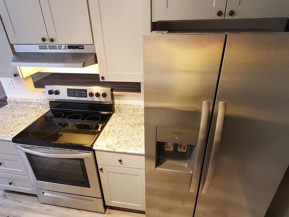 Everything is brand new: New flooring, new paint, new cabinets, new bathroom vanity, new light fixtures, new appliances with ice maker. Two bedroom with large laundry room. Must see. Owner pays for water and trash. Renter pays for electric, internet, cable, etc.