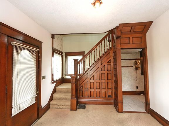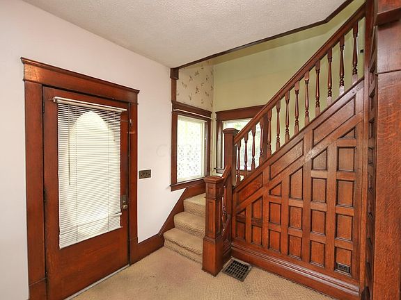 Charming older home with lots of character throughout, features include 3 bedrooms and 2 full baths, inviting entry foyer with open staircase, gorgeous woodwork and molding throughout, natural light filled living room and adjoining formal dining room, pocket doors open into the main level family room, eat in kitchen with main level laundry hook up, enclosed back porch, relaxing covered front porch, detached 2 car garage/carriage house with shared paved driveway, situated on two parcels totaling .5714 of an acre, impressive home. $240,000.