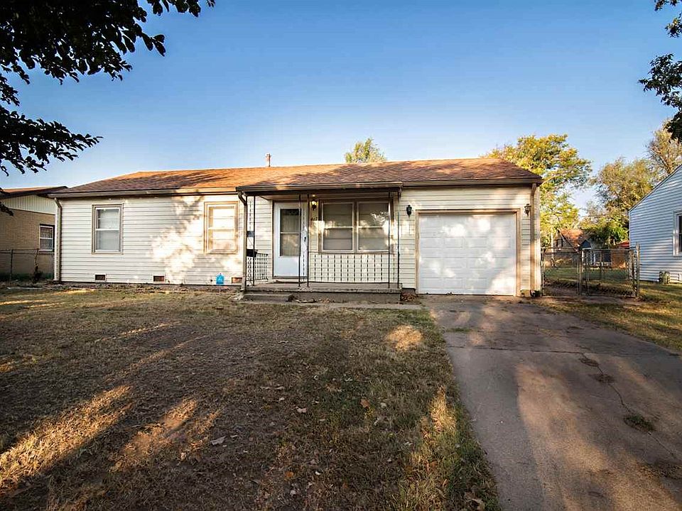 3 BR 1 BA 1 Car Garage Ranch home in West Wichita, close to Lawrence Elementary. Welcoming front porch, easy maintenance vinyl siding, fenced backyard, patio, storage shed. Nice size Living Room. All kitchen appliances stay. Parks, restaurants and churches nearby. Co-listing agent is a licensed real estate agent in the state of Kansas. Call to schedule your private showing today!!