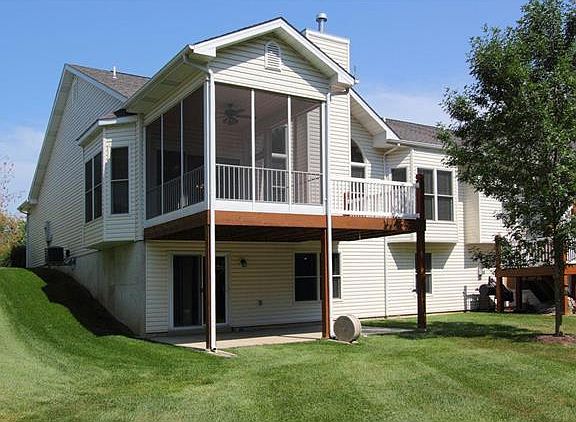 Immediate occupancy available for this exceptional ranch style Villa at St. Andrews. Beautiful setting near end of a quiet cul-de-sac backing to open common ground & trees. Open floor plan with 9' ceilings and a reverse vaulted great room. Direct-Vent gas fireplace with floor-to-ceiling brick and stone. Strip hardwood flooring in the entry & hall. Vaulted kitchen with 42" raised panel cabinets, smooth surface range, microwave & refrigerator. Spacious breakfast room with bay window. Sliding doors exit the breakfast room to a screened deck, which leads to an open deck overlooking common ground. Master bedroom suite with bay window and large walk-in closet. Luxury bath with cultured marble oval soaking tub & separate shower. The second bedroom is served by a full bath with tub/shower unit. Open staircase to the walk-out lower level with 3 windows & slider to a patio beneath the deck. Main floor laundry. Two car garage with keypad entry. Great location! Owner pays condo fee. Don't delay!