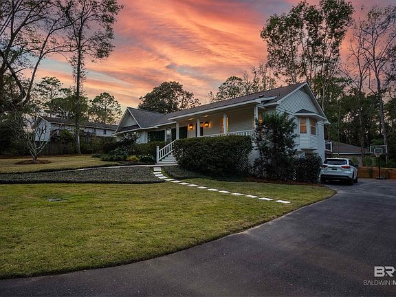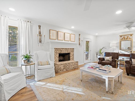 Beautiful White Brick, One Level home featuring 4 bedrooms, 2 Baths and charisma galore near downtown Fairhope. Meticulously kept inside and out with lush landscaping, beautiful lawn front and back. Property features wide Front Porch with railing, Formal Foyer opens to Great Room with wood floors, Brick Wood-burning fireplace and lots of Natural Lighting. Formal separate Dining room is adjacent to the large open Kitchen that has many highly desired features: a large Breakfast Bar, Built-ins, Coffee Station, Bay Window with Custom Bench seat, fabulous Gas Cooktop, lots of Cabinetry, Window sink and Special lighting. The laundry is tucked off the kitchen area. All four bedrooms are great sizes and are on the opposite side of the home giving great privacy when entertaining. There is a wonderful back deck off the Great Room that features attached TV and all the open space for your outside furniture and is a great space to grill/entertain. Home has a Bronze Certified Roof, Termite bond and side entry double garage that is situated under the Main level. The Garage has plenty of room for your tool bench, your extra fridge, plenty of room to store extra overflow and storage needs. Stairs from garage take you to Main level and opens to laundry room. So many features to cherish at this this Fairhope beauty including it's location that is superb! Conveniently located to Fairhope's Fly Creek Marina and the Yacht Club. Call for your private showing. Shown by appt. Buyer to verify all information during due diligence.