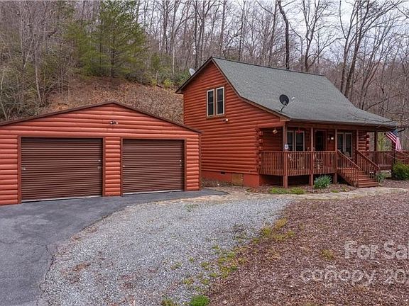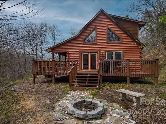 Fulfill your dreams in this private Lake Lure quaint and cozy cabin. With a bedroom and bath on each level plus a loft that is set up for sleeping that could also be an office or recreation space, this 1200 SF log home fits many needs. Almost 4 acres gives way for year-long privacy, winter views and in the summer it will be a 'tree house' feel. Great outdoor entertaining area with the wrap-around deck and firepit. Huge bonus is the double detached garage and carport with plenty of parking around. House is heated and cooled with 3 mini-split systems and it has an on-demand water heater. A small stream runs at bottom, south side of property. This is a turn-key property in a gated community with low annual dues of $420.