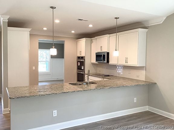 The Southport; First floor Primary Suite with optional tray ceiling, dual walk-in closets, corner bathtub, separate vanities, private water closet and linen closet. Kitchen overlooking the great room with pantry closet. Gourmet kitchen layout option with cooktop and double ovens. Flex room with optional coffered ceiling and wainscotting detail and views to the front porch. Additional side window option. Great room with cathedral ceiling, optional gas fireplace, and access to the back yard. Additional window options flanking fireplace. Single and slider door options onto optional covered porch or patio. Carolina room option. Two additional bedrooms with hall access to full bathroom with tub/shower combination and dual vanity option. Laundry room with washer/dryer connections, linen closet and access to garage. Optional second-floor bonus room which adds 259 square feet to the home! 2 car garage with optional pedestrian door.