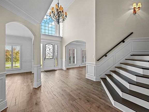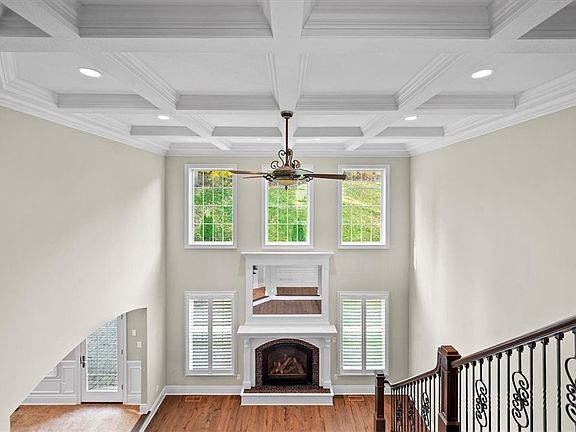 The main level boasts a 2 story foyer with new HW floors and wedding cake dual sided stairs. Freshly painted 2 story open concept great room with coffered ceiling, back staircase and gas fireplace. EIK with s/s Jenn Air appliances, granite, walk in pantry. Island w/prep sink and counter seating. Butler's Pantry, Formal Dining Room, Large bedrooms and sitting areas. 5 car garage w/built-in cabinets and mudroom.