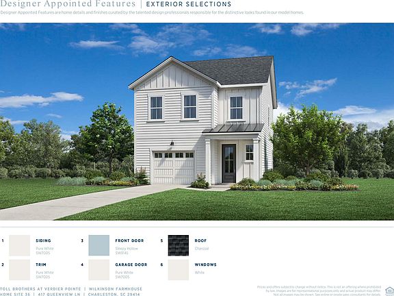 READY THIS SUMMER! The Wilkinson plan offers a versatile open layout with a large kitchen island and plenty of storage. Relax in the cavernous primary suite with its oversized walk-in closet and impressive tray ceiling. A screened porch, full laundry room, and so much more add to the livability of this fantastic floor plan. High-end features and finishes abound, with quartz countertops, oak stair treads, gorgeous plank flooring, stainless appliances, cement plank siding & a tankless water heater. An oversized garage is complemented by DUAL spacious exterior storage areas with lighting and electrical power. Homesite backs to a gorgeous pond! CLOSING COST INCENTIVES AVAILABLE!Verdier Pointe is a meticulously designed and expertly crafted community of new single-family homes in Charleston, SC. Offering a selection of six attractive two-story home designs in a private setting conveniently located off Bees Ferry Road. With easy access to schools, parks, hospitals, shopping, beaches, and more, residents can enjoy luxurious living amidst picturesque surroundings, while still enjoying all that the city has to offer. Verdier Pointe boasts a lovely streetscape and beautiful grounds, making it the ultimate choice for those seeking refined living in the desirable West Ashley area.