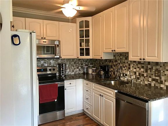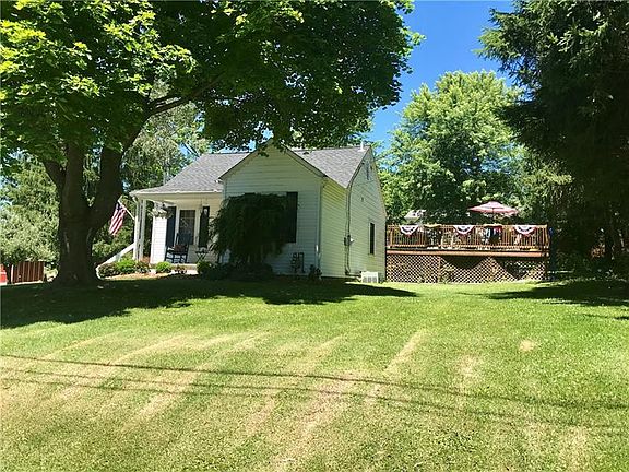 it is the perfect season to enjoy the inviting outdoor gathering spaces spanning 3 lots totaling .44 acre. From a tree bordered fire pit area with the essential lazy day hammock to the deck surrounded pool, summertime fun awaits you here. On the interior, this petite single level packs alot of amenities in its efficient footprint. Efficiency continues from the top down with a newer roof, replacement windows, and energy efficient furnace and air. Your crisp white kitchen is all the rage with its stainless appliances and stone and glass tile accented backsplash. The decor consistency continues with fresh white trim and crown mouldings meeting neutral tone walls and wood look laminate flooring. Ceramic tile underscores the full bath and a solid surface style counter rests on its white vanity, offering a modernly appealing look to the full bath. A second full bath and expanded living space reside in the mostly finished basement. Hobbyist delight 24x32 garage.