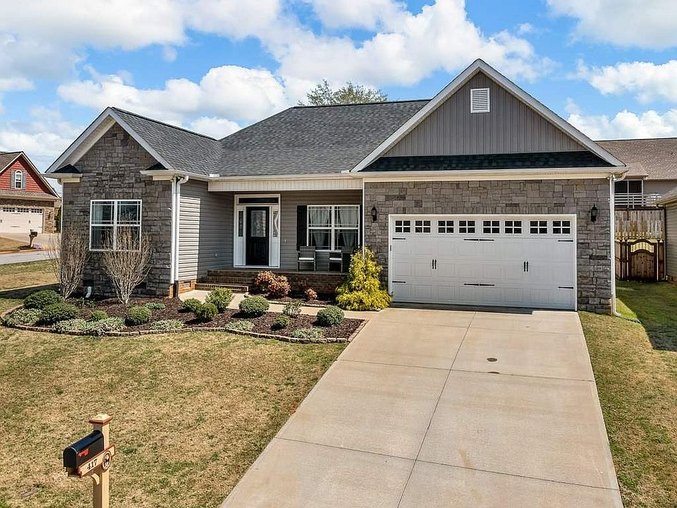 Quality build home by local builder. Beautiful floor plan with custom kitchen cabinets, granite countertops, formal dining, breakfast nook, hardwood floors, gas log fireplace, large master bedroom and master bath. Covered porch and fully sodded yard and community pool!