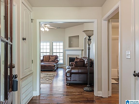 Wonderful one level full brick home on a cul-de-sac lot in Alabaster! You'll love the low maintenance brick and vinyl exterior! Wide welcoming covered front porch! Gleaming hardwood floors welcome you home and continue throughout the house! Great room with corner marble surround fireplace is open to the spacious eat-in kitchen with breakfast nook overlooking the privacy fenced backyard. Breakfast bar and pantry included in the kitchen. Large laundry room leads to the two car main level garage. There is a study just off the foyer, set apart by french doors. This could be used as a fourth bedroom if needed or sitting room. Good sized guest bedrooms with spacious closets share the guest bathroom off the hallway. Master bedroom is good sized and has a private master bath with double vanities, corner garden tub and separate shower plus a large walk-in closet. In the back you have a large covered patio for relaxing in the evening and grilling. The cul-de-sac lot provides a lot of privacy.