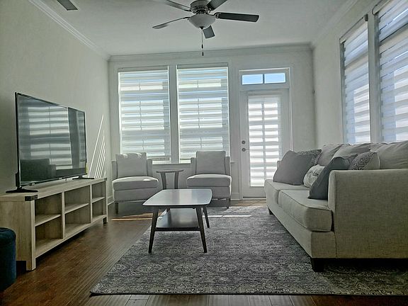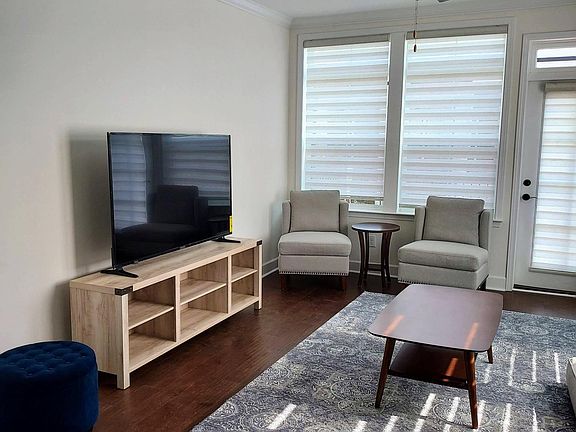 FULLY FURNISHED, modern apartment on the 2nd floor of a newly constructed end-unit townhouse, centrally located in Harvest Point neighborhood. 6-month or longer rentals allowed. Additionally, there is option to rent the whole townhouse as a live/work unit, with frontage entrance, for $3900. The apartment has balconies from the master bedroom and living room, which overlook courtyards, community walking trails, gardens, and dog park. Includes a private two-car garage, small backyard, and is under a five minute walk to the community pool. The master bedroom has a bathroom with walk-in shower and double vanities, a walk-in closet, and balcony that overlooks the private backyard space. The 2nd bedroom has a full bathroom with tub and shower. The apartment also has an in-unit washer and dryer. Small dogs are allowed on a per case basis. No smoking please. The apartment is less than a ten minute drive to Target and various other large stores/restaurants. Small dogs allowed on a per case basis. Fully furnished.