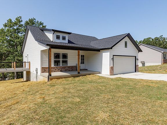 New Home is COMPLETE & ready for immediate occupancy! Water view of Lac Darcie sits and an oversized lot! Step inside and feel all the cozies of home ~ open floor plan with vaulted ceiling and electric fireplace with shiplap chase and mantle/hearth. Kitchen features upgraded white cabinets, crown mold, quartz countertops, pantry, all stainless appliances, subway tile and garbage disposal. Two bedrooms on the main floor ~ Master bdrm features a walk-in closet and full bathroom. Main floor laundry sits just off the garage. Partial brick front & native cedar posts. 12x12 composite deck, roomy covered front porch, 2 car attached garage. Full walkout basement has a bedroom, living room, roughed-in plumbing for future bathroom, and an 8x18 vault room. Back patio. 10-2-1 warranty. Terre du Lac is a private lake community just an hour south of St. Louis! 16 lakes, fishing, boating, swimming, golf, country club.