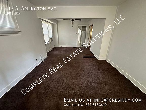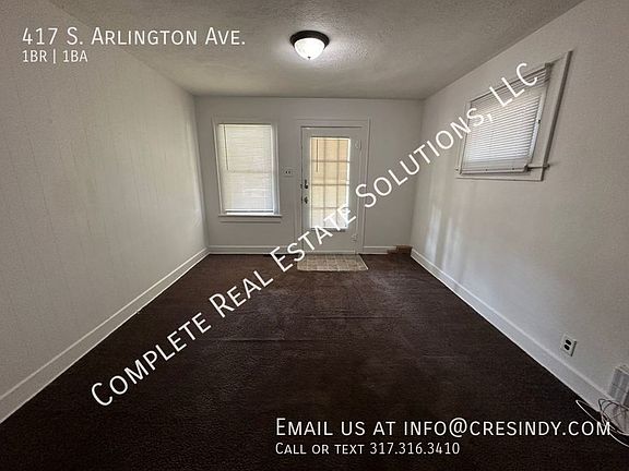 Indianapolis: Arlington & Washington 1 Bedroom, 1 bath ranch duplex with living room, dining room, kitchen and basement. Interior Features include: Laundry hook-up in basement Exterior Features Include: Shared detached garage, Covered front porch, Screen door Appliances Included: Refrigerator (Note: Appliances are not warranted, no maintenance will be provided) Central Air: No Lease Terms: 12 month lease required Sorry No Pets Utilities: Utility Information: ALL ELECTRIC Tenant Pays: All Utilities plus $50 for water billed monthly by property manager All Complete Real Estate Solutions residents are enrolled in the Resident Benefits Package (RBP) for $40.00/month which includes liability insurance, credit building to help boost the resident's credit score with timely rent payments, up to $1M Identity Theft Protection, HVAC air filter delivery (for applicable properties), move-in concierge service making utility connection and home service setup a breeze during your move-in, our best-in-class resident rewards program, and much more! More details upon application. This home does not accept section 8 Contact: cresindy. Schedule a Showing Anytime Information Deemed Reliable, but not Guaranteed