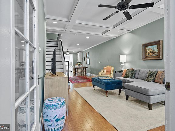 OFFER DEADLINE MONDAY 6/12 @ 3PM - PATTERSON PARK CHAP TAX CREDIT RENOVATION W/ 3 FINISHED LEVELS, OFF STREET PARKING & ROOF TOP DECK - this 14' wide renovation conveniently nestled between Canton and Patterson Park features over 2000 sq ft of living space with open floor plan offering hard woof floors throughout, exposed brick, crown molding coffered ceiling, large living room, separate dining area and stylish kitchen with ss appliances, marble tile backsplash, quartz countertops and under cabinet lighting leading to easy access parking pad. The expansive upper-level features two big bedrooms, owner suite with luxurious bathroom featuring double bowl vanity and hallway access to composite roof top deck with remarkable views of the downtown and the park. Fully finished lower level offers two additional bedrooms, laundry and storage - current annual taxes only $2435, 1 year remaining on chap tax credit.