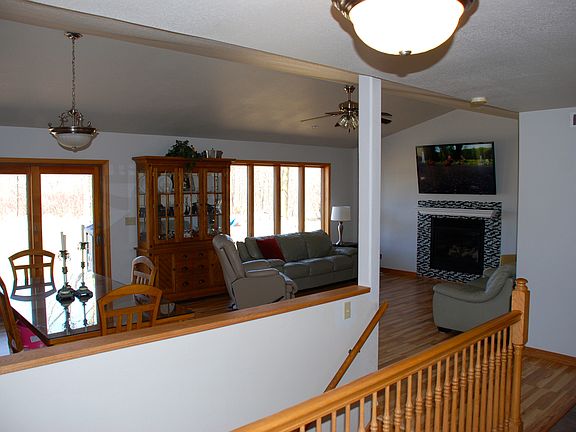 Beautiful 4BD/3.5 bath home on .48 acre private wooded lot. Open concept kitchen,dining & living. Lffetime warranty on new Laminate flrs. Spacious master suite w/great views,1st flr laundry & additional 1.5 baths. Lower has bedroom w/egress, full bath & stairs to garage. Over-sized 4+ garage w/workshop & rear 1 car garage door. Extra parking pad for RV or Boat. Walking distance to park & schools.