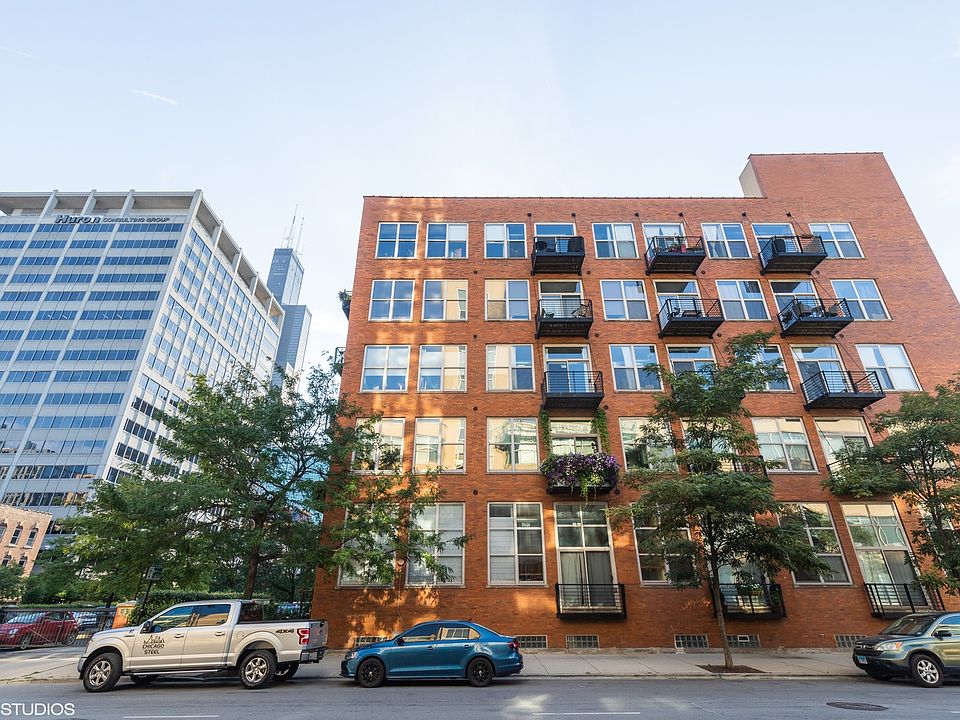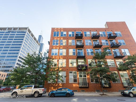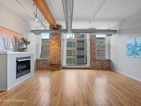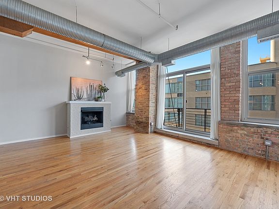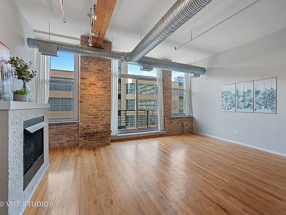 Spacious & sunny west-facing 1BD/1BA timber & brick loft in an old printing press building offering quintessential West Loop character! Just steps from countless neighborhood restaurants, grocery options, your office & public transit incl Blue Line and both Ogilvie and Union Stations. Large combined living & dining rooms feature hardwood floors, 12' ceilings, gas fireplace & three sets of tall windows & sliding door leading to balcony offering neighborhood views. Open concept kitchen offers lots of cabinet & prep space, a large peninsula w/breakfast bar, SS appliances incl brand new dishwasher & refrigerator! King-sized master bedroom has new carpet, fan & wall closet. Addtl room for adding closet space if needed! En-suite bathroom feat single vanity & bonus linen closet for lots of storage. Washer/dryer in unit, central heat/AC & great storage space! Gated exterior parking space included! Bldg features two furnished & common roof decks, large gym, bike storage, dog-friendly bathroom areas, professional management and on-site engineer/maintenance. Addtl 4X4X8 storage in bldg. Freshly painted & ready to move in! Easy to show with a little notice.