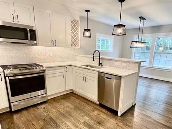 Located in Ardmore, this home is completely updated with new wiring and plumbing. All new Siding, windows, HVAC. Covered front porch & side screened porch. Off street parking in back alley includes parking pad plus 1 car detached garage. Beautiful hardwoods. All new primary bedrooom on main level with vaulted ceilings, new carpet, large walk-in closet and gorgeous primary bath with tiled walk-in shower and double sink vanity. Fireplace in living room is decorative only. All new Kitchen with shaker cabinets, tile backsplash, granite counters, stainless steel appliances. Laundry room off kitchen and pantry. Three more bedrooms on second floor plus all new hall bathroom and large hall storage closet.