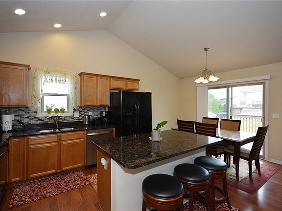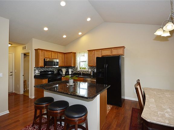 Grimes ranch home that backs to green space giving you more privacy to the rear of the home. Finished living area of approximately 2230 square feet with 3 bedrooms and 2 bathrooms on the main level and an additional bedroom and bathroom in the basement. The basement also contains a large family room which is plumbed for a wet bar and daylight window for extra lighting and plenty of storage space in the utility/storage room. Recent updates include a new roof in 2019, an additional parking pad alongside the garage, dishwasher, microwave, washing machine, and basement doors. Vaulted ceiling in the living room and the kitchen has granite countertops. The yard is fenced. The green space is maintained by the association and provides plenty of space to the rear for privacy. Basement square footage is per the seller. Most of the furniture is negotiable. Washer, Dryer, and the small storage shed in the backyard is included.