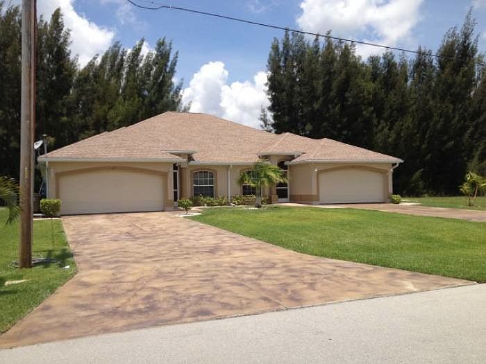 This beautiful custom built half duplex is literally located on Lake Kennedy which connects to all of the largest lakes in Cape Coral. In addition to the breathtaking water views from your large comfortable private screened lanai, this unit features a 2 car garage, tile throughout the main area, carpet in bedrooms, tile shower/tub, rounded edge corners, plenty of archways, very large Master bedroom with twin walk in closets, city water, sewer, irrigation so no stinky water here! We also include Free Professional Lawn Care, professionally managed with easy access to property manager. Submit your application today and get out of the middle of nowhere in the North or in the middle of an apartment complex! 12 month lease minimum. Pets are allowed with Conditions.