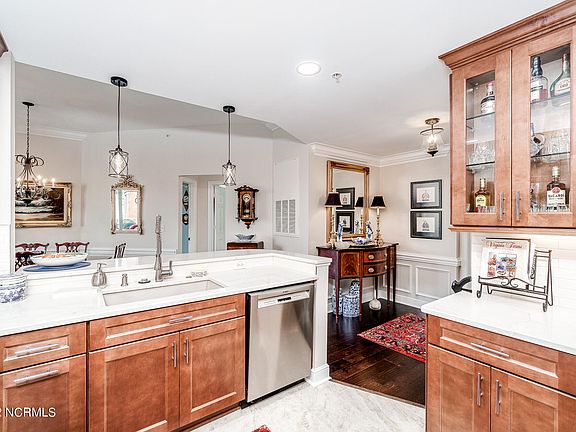 VIEWS! VIEWS! VIEWS! $100,000+ renovation in this penthouse-level, highly customized corner unit that has some of the best views in downtown New Bern. Featuring THREE waterfront balconies and exquisite updates by the current seller, this condo home has an open floor plan, new gourmet kitchen with quartz counters and stainless steel appliances, updated bathrooms, wide plank wood flooring, crown moldings, chair rail and wainscoting, upgraded lighting, built ins, designer finishes throughout and much more. With views from almost every room, you can see for miles from the marina to Lawson Creek in this one of a kind home. Don't miss the opportunity to own this rare THREE bedroom (each with a balcony overlooking the river) condo! Sky Sail is New Bern's only waterfront, amenity-rich Downtown condo community with gated garage parking, saltwater pool, and fitness center. In the heart of everything that Downtown has to offer, this extraordinary home is one of a kind! Preferred lender is Alpha Mortgage.