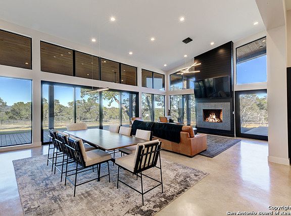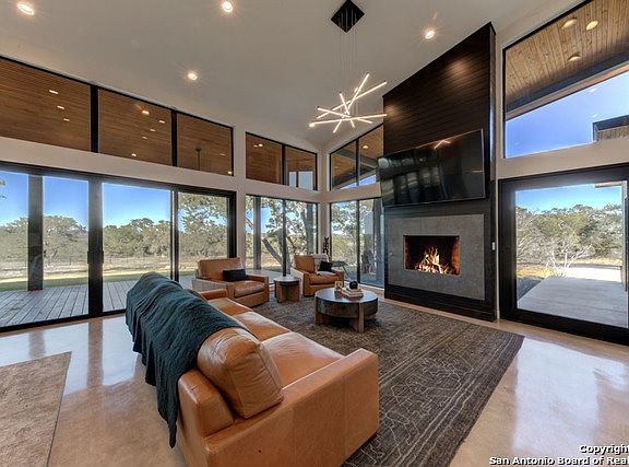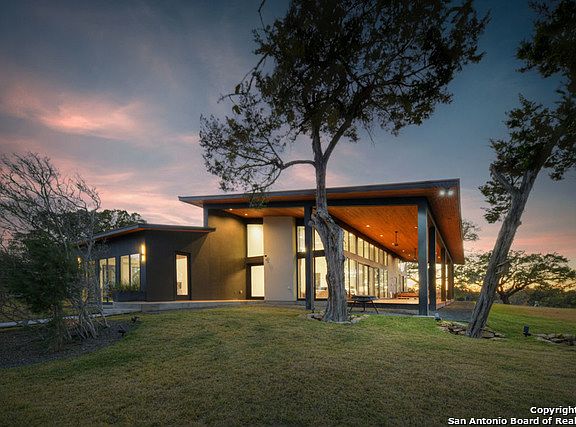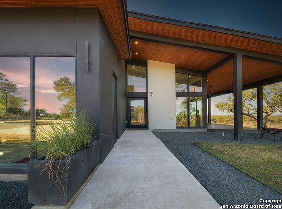 Modern Luxury in the Texas Hill Country Experience the perfect blend of contemporary design and natural beauty in this exceptional custom-built home, set on +/- 10.25 acres in the heart of the Texas Hill Country. Crafted by the acclaimed Dynamic Custom Homes and designed by Oscar Flores Design Studio, this residence showcases impeccable craftsmanship, clean architectural lines, and expansive windows that bring the outdoors in, offering breathtaking views from every room. The open-concept layout creates an inviting space ideal for entertaining and everyday living. The gourmet kitchen is a chef's dream, featuring an oversized island, abundant countertop space, high-end appliances, and a stylish dry bar. The serene primary suite and luxurious en suite bath provide a private retreat, while every room reflects thoughtful attention to detail and spaciousness. Step outside to a generous covered patio with ceiling fans, perfect for enjoying the Texas weather year-round, along with a separate fire pit area for relaxed gatherings. The property also includes a detached two-car garage and benefits from an agricultural exemption on nine acres. This is truly an extraordinary opportunity to own a stunning piece of Texas Hill Country. Schedule your private showing today.