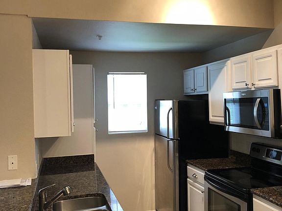 Spacious one bedroom one bath fully upgraded condo in the highly desirable community of Residences at Sabal Point. This open and airy condo has dark wood floors in the living and dining rooms and tile in kitchen, bath, and laundry. The walls are freshly painted in a soft greige that will complement any decor. You can prepare dinner in your beautiful white kitchen with granite counters and stainless steel appliances or enjoy the serene view from your screened lanai. You may also enjoy the resort style, solar heated pool, newly renovated tennis court, and fitness center. This condo is available for immediate move in don t miss this opportunity! Rent includes Water, Sewer, Trash Removal, Pest Control