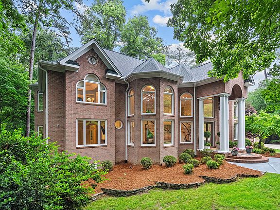 Stunning All Brick 2 story w/ finished basement - Popular Swans Mill neighborhood - Former Parade of Homes house loaded with exceptional features - 2.48 acre private wooded lot - Grand entrance foyer w/ dual curved staircase - Island kitchen w/ artesian tin ceiling tiles, 6 burner gas cooktop, griddle, coffee station, custom cabinetry and pantry - Two story family rm w/ wall of windows overlooking wooded backyard - First floor office w/ built ins - First floor bedroom w/ full bath - Luxurious primary bedroom suite w/ tray ceiling, his & hers walk in closets, wall safe & private covered balcony, - Primary bath has a walk in shower, jetted tub, and heated tile floors - Full basement features an exercise rm, bonus/office, kitchenette, full bath, workshop & rec rm - Incredible screened in porch w/ stacked stone facade fireplace, grilling station and bar area - Community pool and tennis