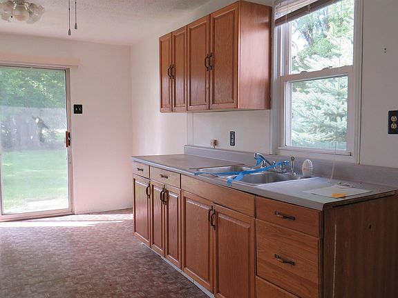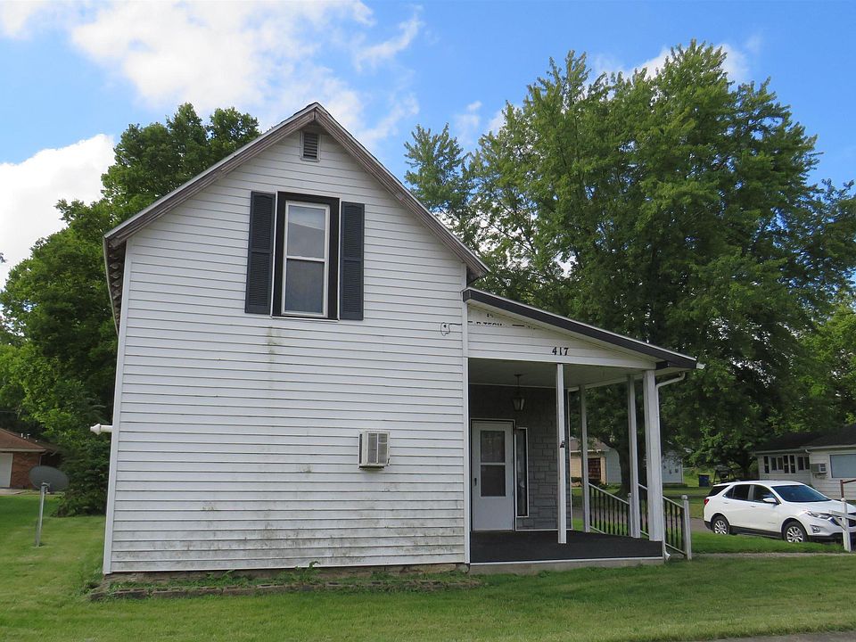 Large living room, oak cabinets in kitchen, kitchen is open to laundry area, covered front porch, some replacement windows, storage shed, corner lot. Near Cardinal Greenway and skate park.