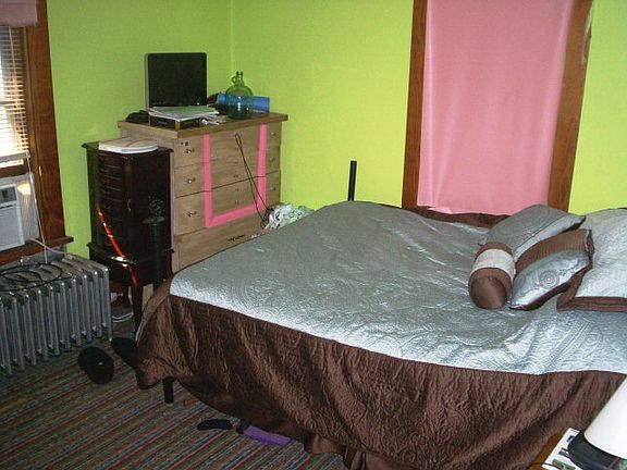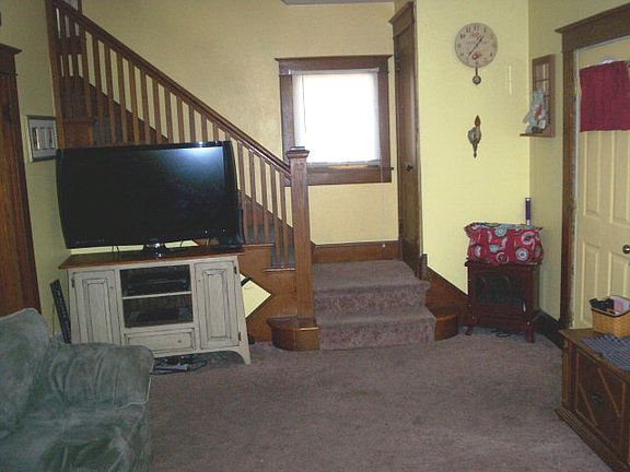 This home has 2 large bedrooms, dining room with French doors, 1.5 baths, detached garage; third bedroom in basement.