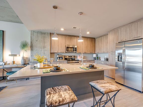 Located in the heart of Downtown Raleigh, our apartments near NCSU in the neighborhood of Smoky Hollow offer the best of Raleigh living at your doorstep. Luxury features like quartz countertops and custom cabinetry with designer hardware and tile backsplashes will make you proud to call any of our spacious studio, one, two, and three-bedroom apartments on Capital Blvd. in Raleigh, NC home. Convenience to North Carolina State University, William Peace University, and major thoroughfares makes your everyday commute a breeze. And when you're considering your weekend (or weeknight) plans, you have plenty of options nearby. Spend a sunny day running through Fred Fletcher Park, experience the restaurants, drinks, and nightlife of Downtown Raleigh, head to Lenovo Center to for a concert with friends, or come home to enjoy city views at our Sky Lounge. Hosting friends for a night in? Easily pick up food or drinks with our direct elevator access to Publix.