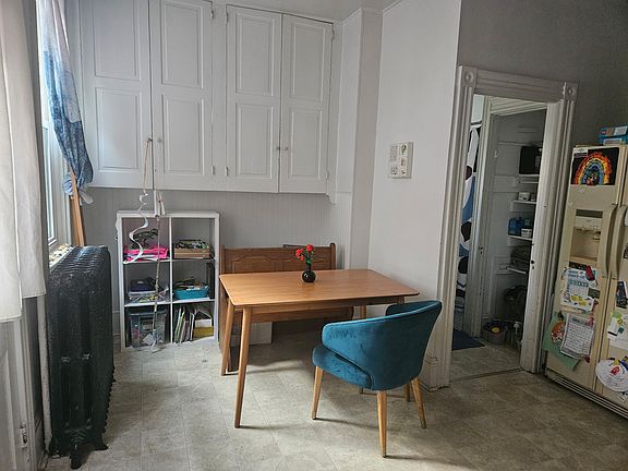 This large, light-filled, 1st floor apartment has 1 bedroom, space for an office, large living room, eat-in kitchen and 1 bath. Laminate flooring in the living room; tile bathroom. An easy walk to Dogstar Bookstore, Mean Cup, the Fridge, and downtown. There is a shared laundry in the basement to which this apartment has inside access. Heat is gas radiator, cooking and hot water are electric. No pets. No smoking. Income requirement $22/hr. References required. One year lease. No month-to-month. Owner pays trash/water/sewer. Tenant pays gas and electric. No application fee.