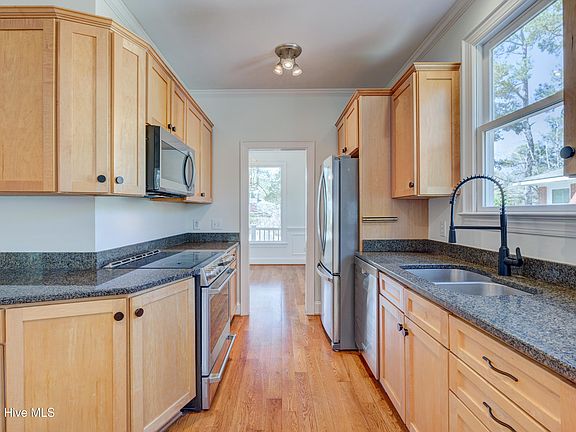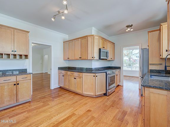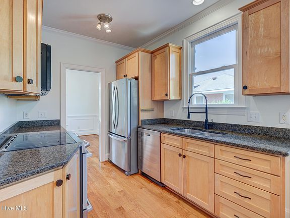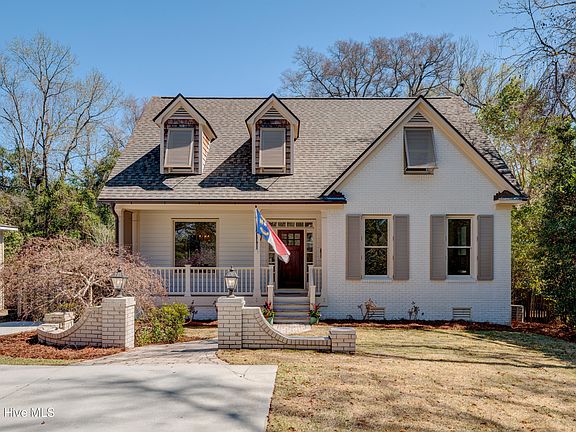 Among the majestic live oaks and vibrant azaleas of Beaumont lies this stunning Cape Cod-style home blending timeless charm with modern convenience. Thoughtfully designed to complement the historic character of the Forest Hills area, this custom-built residence offers four bedrooms, 2.5 baths, and 2,630 square feet of beautifully crafted living space—providing ample room for your family to thrive. Elegant details abound, from gleaming hardwood floors and classic crown molding to the sophisticated formal dining room. The standout kitchen is a chef's delight, featuring granite countertops, recently upgraded stainless steel appliances, a cozy eat-in area, and an adjacent laundry and mudroom for added convenience. The first-floor owner's suite is a serene retreat, complete with a custom tile walk-in shower, a separate soaking tub, and dual vanities. Upstairs, a unique and expansive layout offers a massive family room, three spacious bedrooms, and a full bath—perfect for gathering, relaxing, or entertaining. Step outside to enjoy the massive screened porch overlooking a private, fenced backyard, complete with a patio and covered grilling pavilion—ideal for outdoor living year-round. Adding to its appeal, the spacious detached garage features a semi-finished second floor, perfect for an art studio, music room, or home office. Ideally located in Beaumont, this home offers easy access to historic downtown, emerging retail and arts districts, the airport, the hospital, and Wrightsville Beach. A rare blend of classic charm and modern comfort, this home is ready to welcome you.