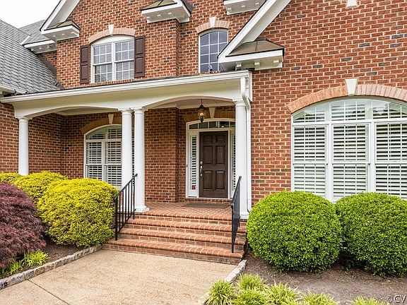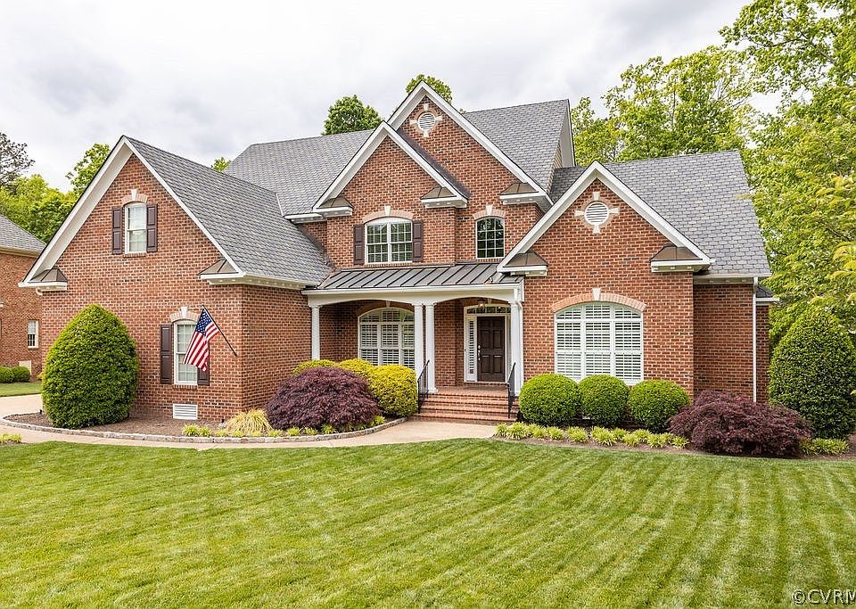 Welcome to the ever-popular Kinloch neighborhood! This stunning, all-brick custom spec home features a large first floor owners' suite with new tile floors in the bath & shower. The spacious kitchen is equipped with a large island, double ovens, granite countertops & a handcrafted tile backsplash. Walk out onto a gorgeous covered porch that leads to an expansive stone patio and well-manicured yard with an upgraded 10 zone irrigation system. Patio includes a natural gas grill hookup, perfect for entertaining. This home is elevated by the attention to details: architectural and recessed LED lighting, plantation shutters & a newly remodeled laundry room featuring a utility sink, granite counters & upgraded appliances. Additional features include: 2021 Ruud HVAC system, new 2020 tankless water heater, gutter guard system with warranty, security system, crawl space incapsulated with a dehumidifier in 2019, separate ventilation system in upstairs bonus room, 4 flat screen TVs, audio/video system with internet/WIFI rack, and large unfinished 3rd floor walkup. This home offers carefree living at its best in one of the most sought-after areas in Manakin Sabot.