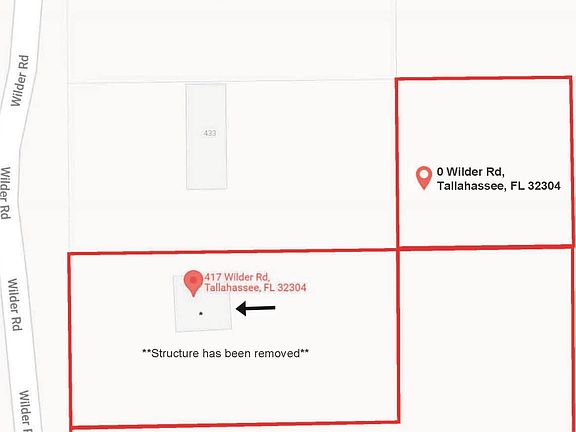 All ready for a mobile home or a new build. There are 3 lots being sold together that total 1.49 acres. Within the 3 lots combined there is a well, 2 septic tanks and a power pole. This particular parcel of land is near the end of the road and adjacent to parcel ID#2223050000010. Parcel number; 2223050000010 (401 Wilder Rd Tallahassee, FL 32304 Lot 1 Plus Adj TRT) , Parcel number; 2223050000020 (417 Wilder Rd Tallahassee FL 32304 Lot 2), and Parcel number; 2223206350000 ( 0 Wilder Rd Tallahassee, FL 32304 IN NE 1/4 of SW 1/4) are all being sold together for one total price and not being sold individually.