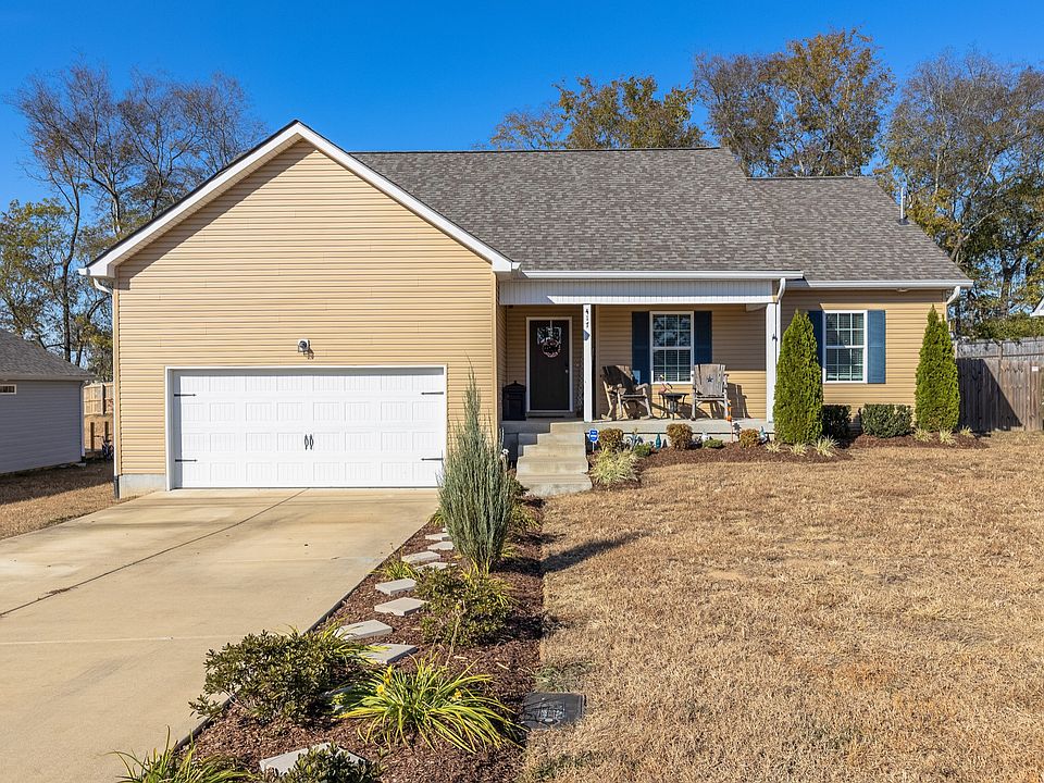 4 year old home in excellent condition in northern Columbia close to Saturn Parkway. NO HOA! HUGE eat-in kitchen w/SS appliances, tons of cabinets & counter space and a sep. pantry w/sliding barn door! Extra area off kit for office space, play area or dining room. Spacious living room with trey ceiling & fan. Single story, split bedroom floor plan. Large primary bdrm, private spa bath w/sep. shower & large soaking tub. HIS/HER walk-in closets! Two add. bdrms each w/oversized closets. Large laundry room, 2 car gar., wood laminate floors everywhere except bdrms(carpet). 2" blinds, ceiling fans, extra closets, keyless entry & fenced back yard. All this PLUS a 16x10 HEATED & AIR CONDITIONED SHE-SHED in the backyard currently used for a crafting business, but the possibilities are endless!