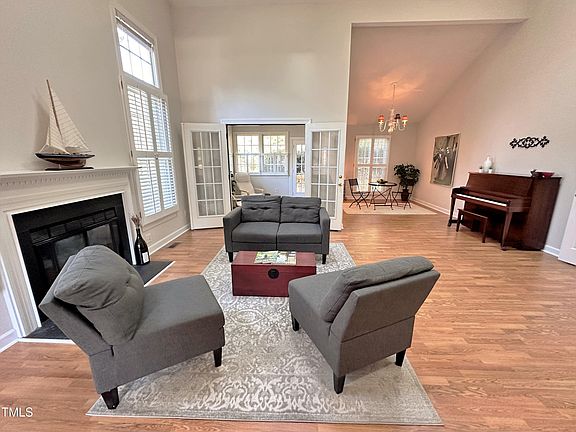 Tucked away in one of the more private closes in Countryhouse V, This 3 bedroom 2 full bath end unit townhome offers an open floor plan with soaring cathedral ceilings, a generous kitchen with loads of storage, nature views through all the windows and a one car detached garage. Quiet living in a peaceful setting, Fresh paint throughout, laminate flooring and an easy walk to the Fearrington shops and restaurants.