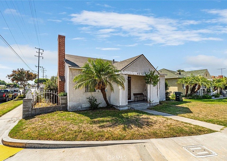 Searching for an exciting fixer-upper that you can transform into the home of your dreams? Enviably set on a corner lot in a fantastic family-friendly North Lynwood neighborhood, this delightful bungalow has a vibrant, sun-soaked interior that’s great for entertaining! An open-concept layout bathed in natural light from picture windows allows a seamless flow from mingling in the warmth of the living room’s fireplace to sharing meals in the adjacent dining area. Whip up culinary delights in the generous kitchen, showcasing abundant white cabinetry, contrasting tiled countertops, and a garden window for fresh herbs. Personalize the well-sized retreats to fit your style and needs, including the primary suite with a convenient ensuite. A refreshing hall bath accommodates the secondary bedrooms. Create your own oasis on the covered patio and backyard where you can unwind in seclusion. Premium perks are a laundry room, a detached 2-car garage, and seller-owned energy saving solar panels that will transfer to the new homeowner. A great location puts you near shopping, dining, parks, and the 105 and 710 freeways. Come grab this incredible opportunity while it’s still available!