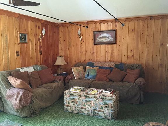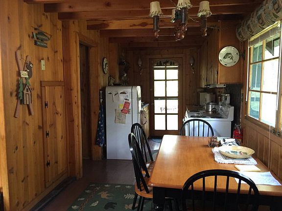 This cabin is a great opportunity for someone looking for privacy and seclusion, and a rare find with an extra lot with 3 - RV hook-ups and bunk house! Over two acres of oversized trees and natural landscapes! Enjoy nature from the front deck! This cabin features 2 bedrooms, and 1 full bath with claw foot tub! Nice sized garage to store the toys! Plenty of room for all! Cabin being sold completely turn key. This cabin is ready to move in! Call today to take a look!
