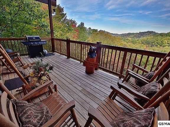 Spectacular mountain cabin nestled on the side of the mountain with great views of the Great Smoky Mountains National Park. Enjoy the scenery from one of the rockers, a deck swing or the private hot tub. Cabin has six (septic is for 5 bedrooms) master bedrooms each with a jacuzzi. Main level has a spacious living area and large fully equipped kitchen. There are 2 suites up in the loft area. In the lower living area are two more suites. There is also a wet bar on this level along with a refrigerator, large screen TV, pool table and foosball. Honeysuckle Meadows pool and deli are also available for members also featuring a fishing pond and area to cook out. Rentals booked through 4/23/18 $74,669. A MUST SEE!!! Cabin name: Mountain Shadow Lodge.