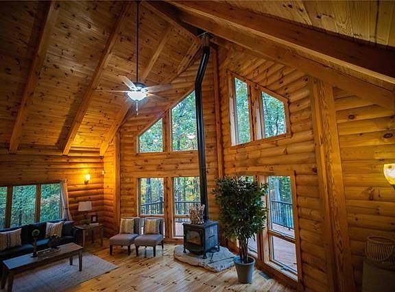 Custom Log-Home with Luxury Upgrades! This beautiful 2800sqft open-floorplan with 4 bedrooms and 4 FULL baths will impress with its soaring vaulted ceilings, glowing hardwood floors, porcelain tile, and sparkling granite countertops. Large master-suite with completely upgraded shower, jacuzzi tub, and private balcony. Black stainless steel appliances, main-floor laundry, wood burning fireplace/stove, and basement bonus room with full bathroom! Bring your car, tool, or other toy collection to put in the INCREDIBLE 3200sqft shop/pole barn! Sitting on 16 serene wooded acres with a gated entrance and private drive, full of wildlife, ATV trails, a creek, and great hunting spots! Various vegetation such as soybean and clover has been planted throughout the yard to attract wildlife. Too many upgrades and improvements to list! Make this your home and you will feel like you're on a vacation that you never have to come home from!