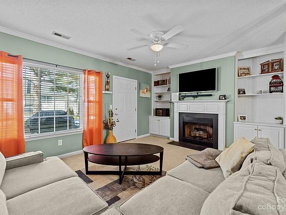 Welcome home to Melrose Townhomes, a charming well-kept community in the heart of Matthews! The community features a lovely pool, clubhouse, and fitness center. This 2 story townhome has two primary bedrooms, each with its own full bath and large closet, ideal for a roommate situation. The large living room features a warm gas fireplace with built-in bookshelves on each side. From the bright, cozy kitchen and pass-through/breakfast bar, you can see the spacious dining and living rooms, and out to the sunny patio. There is also an ample storage room off the large patio. The laundry is conveniently located upstairs near the 2 bedrooms. Come make this wonderful home your own! Some cosmetic updating is needed and it's reflected in the price. The super location is close to shopping, restaurants, charming downtown Matthews, and everything Charlotte has to offer. Homes in this community sell quickly so make your appointment to see it today!