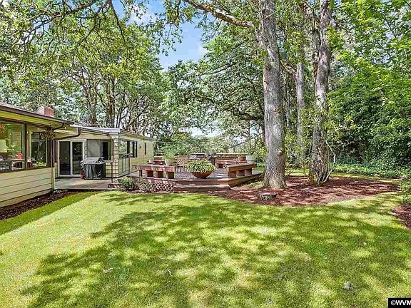 Single level home available for rent in desirable SW Corvallis neighborhood on large 0.34 acre lot. Remodeled kitchen with Curava countertops, new cabinets, stainless appliances including Thor gas range. Living room has custom shelving & cozy gas fireplace w/ access to backyard. Living, dining and 3 bedrooms all have oak hardwood floors. Large rec room has new carpet or could be another bedroom. Spacious fenced backyard shaded by mature oak trees, with covered patio, large deck, and raised garden beds. Remodeled bathroom w/ new vanity, flooring & more. Video tour will be available evening of 8/17. Open house Mon 8/17 from 4-6p. Additional in person tours may be arranged after this. Please wear a mask if entering the home. Owner pays for garbage, renter pays for electric, water/sewer and natural gas. No smoking. Pets allowed with additional security deposit.