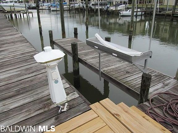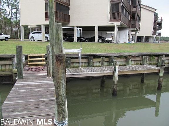 This 3 bedroom, 2 bath unit overlooks Bon Secour Bay and Mobile Bay for an unobstructed view of sunsets 365 days a year. It also has covered parking for two cars and a large outdoor storage room with power and is assigned boat slip #129, the largest slip at SBB (approx 60'x27') and has power, water and a fish cleaning station on the dock walkway.The complex amenities include two saltwater pools, a hot tub, tennis courts and a storage yard for trailers, boats and RV's.