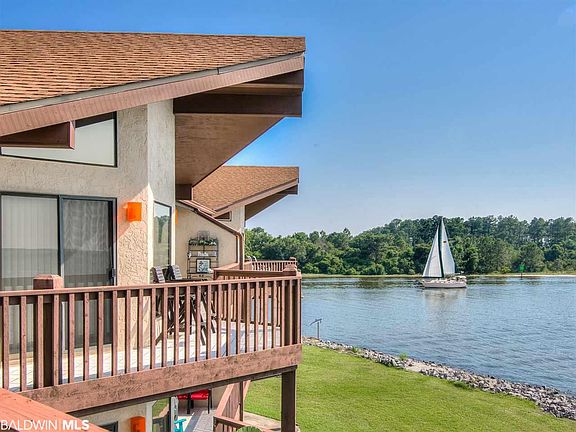 Dolphins are swimming at your back door! This recently remodeled, top floor corner unit condo is located in one of the most beautiful, undiscovered and unique marinas in Gulf Shores. Fabulous views from your balcony encompassing Bon Secour Bay, Intracoastal Waterway and Bon Secour River. This 3 bedroom, 2 bath condo includes an assigned boat slip with 10,000 lb lift, Folkers high impact sliding glass doors, storage room under unit, two covered parking spaces, vaulted ceilings, attic storage and more. Fish of the dock, swim in one of two saltwater pools or hit the tennis courts. Fun for the entire family!