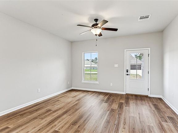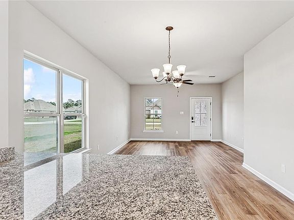 Welcome to this beautiful, clean and pristine 3-bedroom, 2-bathroom home, only 4 years young, nestled in a peaceful, quiet, family-friendly neighborhood. Designed for modern living, this home features an open floor plan with stylish vinyl plank flooring throughout—no carpet! The kitchen boasts granite counter-tops, stainless steel appliances, and ample cabinetry. The spacious bedrooms offer comfort and versatility, while the primary suite is a true retreat, complete with a large walk-in closet and a private en-suite bath. Step outside to enjoy the covered back patio, perfect for relaxing or entertaining, overlooking a large backyard with plenty of space for outdoor activities. *Roof is only 4 yrs young with Architectural Shingles; home comes with a builders warranty on the slab only, until September 2025. This home is located in the highly desired flood zone X - no flood insurance is required. Don’t miss your chance to own this move-in-ready gem! Schedule your showing today!