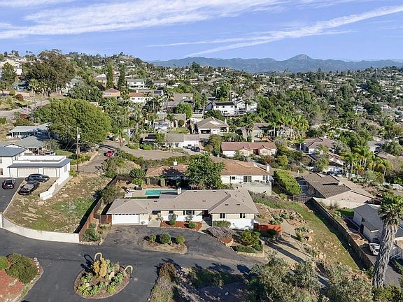 Quiet Cul-de-Sac Retreat with Panoramic Views all the way to the Coronado Islands, Pool, and Perfect Space for an ADU or Vineyard - Discover this beautifully designed, single-story custom residence nestled on a peaceful cul-de-sac in the prestigious Mt. Helix community. Spanning nearly 2,000 sq ft on a generous ½-acre lot, this move-in-ready 4-bedroom, 2-bathroom home offers breathtaking views from every room—perfect for enjoying San Diego's valley vistas and city lights. Private Pool surrounded by a new lawn for year-round enjoyment and outdoor entertaining. Paid Solar system (owned, not leased) for energy efficiency and significantly reduced utility bills. Recent Major Upgrades include: NEW ROOF, NEW FURNACE, UPGRADED PLUMBING, UPGRADED ELECTRICAL PANEL and UPGRADED BATHROOMS featuring charming antique touches for character and style. Detached 2-Car Garage with additional driveway parking. Small chicken coop is ready for hens—enjoy farm-fresh eggs right at home! Step inside and feel instantly at home—the open, welcoming layout blends modern upgrades with timeless custom details, creating a warm and inviting atmosphere.