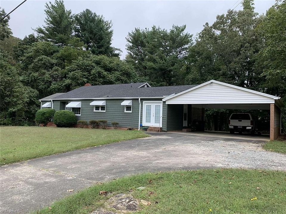 A charming 2 bedroom, 2 bath home bordering Kernersville with a driveway entrance from High Point Road and Temple School Road. Features include a large drive through 2 car carport, french doors from bonus room, separate laundry/mud room off carport, long galley kitchen, dining room and fireplace in the living room with hardwood floors in main area and bedrooms. Home has a Brand New roof, Siding and paint throughout. HVAC is less than 5 years old. Home has over an acre of partially wooded land and is in a wonderful country location with easy access to I40, I74 and new shopping options and restaurants on Union Cross. Selling As-Is.