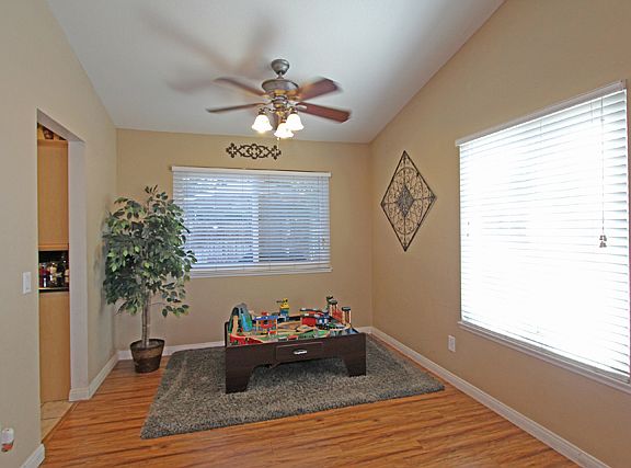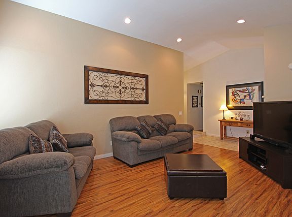 Gorgeous home located in la sierra area. This is a turnkey home with lots of upgrades. This beautiful remodeled single level home features 4 bedrooms, 1 3/4 baths, sparkling swimming pool and Jacuzzi has been converted to a salt water to help keep it low maintenance and be gentle on your skin, artificial grass to cut down your water usage and to help you save money, fire pit, Porch in back yard, with stamped concrete, child protection fence on the swimming pool area. Interior paint brightens the excellent floor plan! High vaulted ceilings. The kitchen is incredible with custom cabinets, Granite backsplash and countertops, stainless steel appliances, the hallway bathroom features tile flooring, granite countertop, custom cabinetry and a tiled shower tub. All the Bedrooms have ceiling fans and new carpet. The rest of the house has tile, wood and laminated flooring in some areas. Double panel windows throughout the house. AC unit was installed 2 years ago. Mrs. Clean lives here, this house show great!!!!