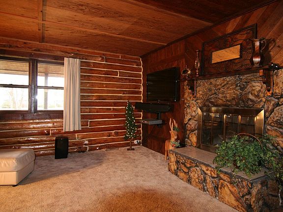 If you have always dreamed of having a log cabin at an affordable price, this is the home for you! Nestled on a one acre wooded lot in popular Bel Aire, you will feel like you are in Colorado! Snuggle up to a roaring fire on cold winter days. Bundle up and relax on the front porch swing, or barbeque on the covered wood deck. The fully-applianced kitchen has a stove, dishwasher, disposal, stainless steel fridge and space-saver microwave. Main level Hollywood bath. The lower level walk-out overlooks the lovely front yard, and has a spacious family room and third bedroom, and a full bathroom. The beautiful washer and dryer remain with the home! Plenty of storage, with two sheds and an oversize two car garage (with opener). A sprinkler system keeps the yard lush. Do your own updating and build sweat equity!