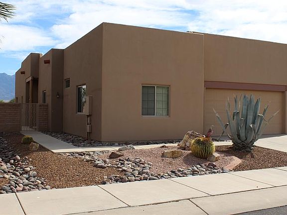 This southwest townhome boasts an eye popping view of the Santa Ritas as its backdrop. At the front door there is a custom security screen, and many more delightful features inside. Your first impression as you step through the front door will be of Southwest charm as you take in the color palate; a rustic antique pantry door; plant shelves above; and a nook to display your favorite piece of art work. Outstanding floor plan will make you feel right at home. The centerpiece of the Great Room is a fireplace ---perfect for taking the chill off a cold winter's evening. You'll love the lay out of the kitchen along with the ease of cooking with a double oven. Enjoy good food and great friends as your gather around the built-in bbque for a fun filled time and to soak in the magnificent mou