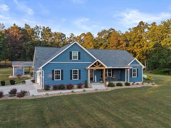 Welcome to country living at its finest! Nestled on 14 primarily flat acres, this stunning home was newly constructed in 2022 and offers over 2,700 sq. ft. of living space with 4 bedrooms and 3 full baths. From the moment you arrive, you’ll be impressed by the architectural timbers, wood ceilings, and professionally landscaped grounds that highlight the inviting entry. Inside, the open-concept living area features vaulted ceilings, white cabinetry with granite countertops, and a spacious design perfect for entertaining. The split floor plan offers privacy with a luxurious primary suite showcasing a spa-like bath with a stand-up tile shower, soaking tub, and double bowl vanity. Two additional bedrooms and a full bath are located on the opposite side of the home. The main level also includes a large mudroom and laundry room conveniently located off the garage. Upstairs, you’ll find a private bonus suite with a bedroom, full bath, and additional storage space. Step outside and fall in love with the backyard oasis featuring a heated saltwater inground pool, complete with a pool house that mirrors the home’s beautiful wood architectural timbers. A screened-in porch provides the perfect place to relax while overlooking the pool area. This property is ideally situated between two of Kentucky’s most beautiful state parks — Grayson Lake State Park, which offers boating, fishing, golf, camping, hiking, and more, and Carter Caves State Resort Park, known for its hiking trails, caving, camping, and fishing. Be sure to check out both parks’ websites for full details on amenities and activities. It’s rare to find a newer home paired with such an ideal tract of land in such a desirable location — this property truly has it all.